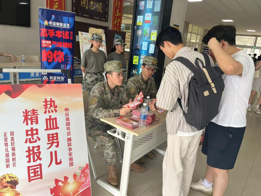 5月19日上午,南昌大学共青学院在院图书馆大厅设置秋季征兵宣传区,并邀请共青城市人武部高圣卿参谋参加,旨在向毕业生们介绍征兵政策,鼓励他们投身国防事业。